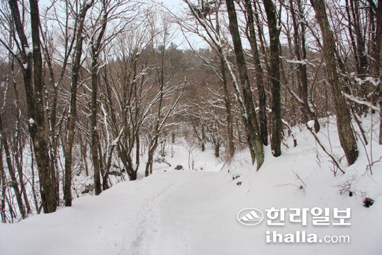 눈 내린 산길은 새로운 세상으로 접하는 통로다. 온통 은백색으로 덮인 고즈넉한 산길이 사람을 절로 무장해제시켜 자연의 일부로 흡수시키기 때문이다. 그래서 누구나 꿈꾸지만 멀어서, 위험해서, 준비할 게 많아서 쉽게 할 수 없는 것이 또한 겨울산행이다. 그러나 최근 도심에서 그리 멀지 않은 곳에 새로운 산길이 생겨 누구나 쉽게 겨울산행을 즐길 수 있게 됐다. 제주시 아라동 삼의악 내창길이다.