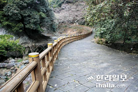 ▲서귀포시 안덕계곡에 있는 창고천에는 상록활엽수림이 울창하게 우거져 있고 계곡 상류에서는 원시적인 형태의 도수로 흔적을 곳곳에서 만나 볼 수 있다. /사진=백금탁기자 haru@ihalla.com