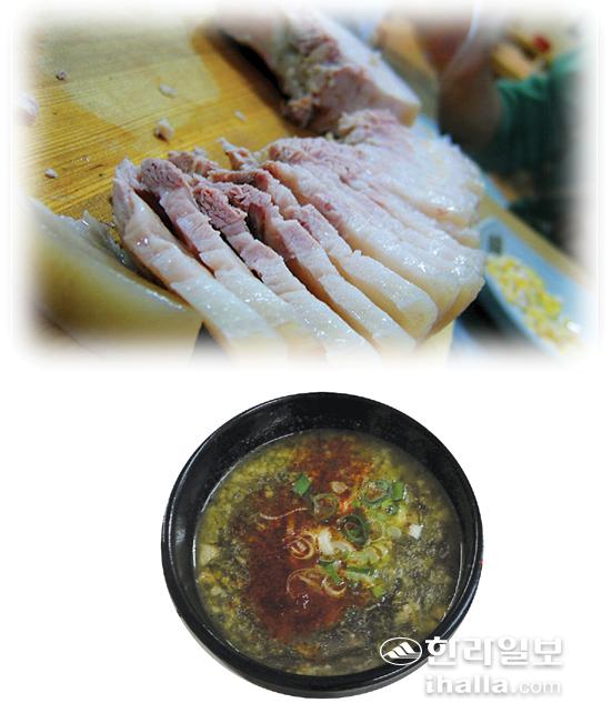 ▲요즘처럼 매서운 동장군이 잔뜩 몸을 움츠리게 할 때 진한 돼지고기 육수로 끓인 제주의 전통음식 몸국과 돔배고기는 추위를 녹이는데 안성맞춤이다. /사진=강희만기자