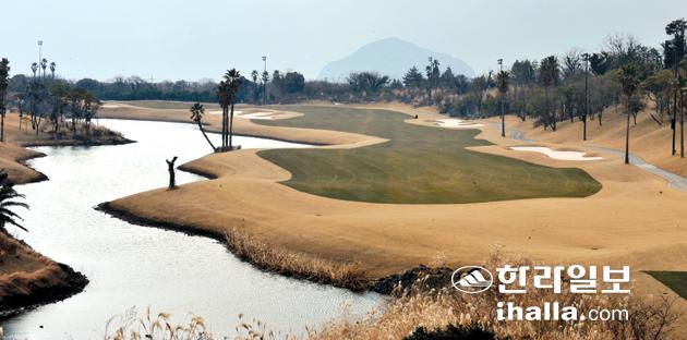 ▶명품홀=밸리 13번홀은 테디밸리에서 가장 이국적인 풍광을 자랑하는 명품홀로 손색이 없다. BLACK-612야드/WHITE-571야드 PAR 5홀로 티잉 그라운드에서 내려다보이는 전체 홀과 멀리 보이는 산방산, 그리고 날씨가 맑은 날에는 멀리 에메랄드 빛 바다까지…