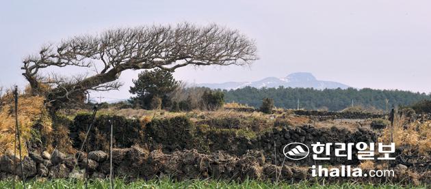 ▲제주시 한경면 금등리의 역사를 간직하고 있는 팽나무의 모습. /사진=강희만기자