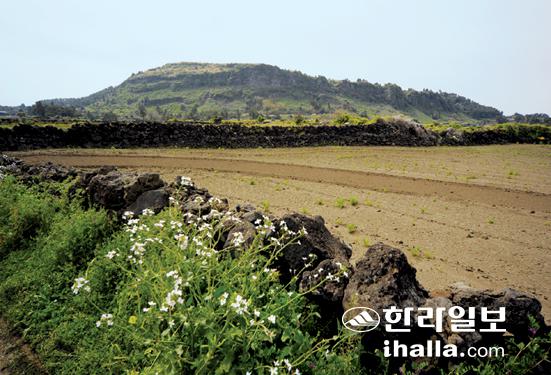 ▲서귀포시 성산읍 시흥리 시흥초등학교 뒤편에 있는 말미오름 전경.