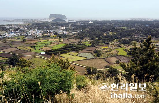 말미오름의 매력은 정상에 있다. 시원한 바다를 배경으로 펼쳐진 성산일출봉과 우도의 모습은 일품이다. 주변 오름들도 제각각 빛을 달리하며 한폭의 그림속에 담긴다. 시흥초등학교 주변으로 정리된 밭들도 저만의 사연을 간직하듯 제각각이다.