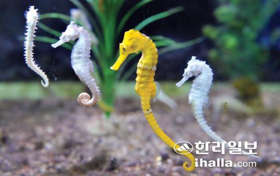 ▲앙증맞은 해마 무리국립수산과학원 미래양식연구센터는 관상어산업을 새소득창출원으로 육성키로 하고 관상어 양식기술을 적극 개발·보급해 나가고 있다. 사진은 미래양식연구센터에 사육중인 해마들. /사진=강희만기자