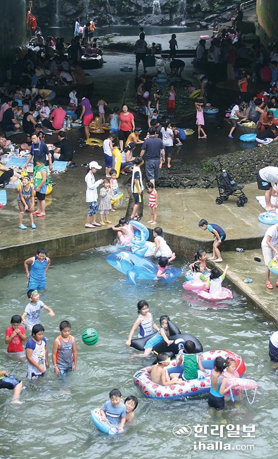 지역주민엔 젖줄이자 정방폭포의 원류도심 속 하천 '시크릿 풀' 한여름 인기