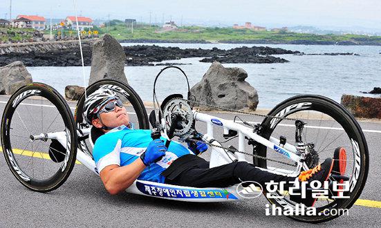 ▲소아마비장애를 갖고 있는 이광훈씨는 핸드사이클의 마니아이면서 대중확산 전도사이다. 지난해 전국장애인체육대회에서 4위로 입상한 이후 발군의 실력을 발휘하고 있으며 내년에는 철인3종경기에도 도전할 예정이다. /사진=강경민기자 photo6n6@ihalla.com