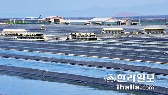 ▲셀레나사는 야외 미세조류 배양장을 만들어 운영하고 있다. 이곳에서 데워진 해수는 해양심층수를 이용해 식히고 있다.