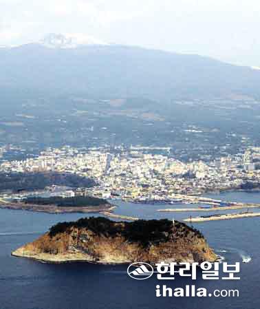 ▲항공에서 바라본 서귀포시와 서귀항 일대 전경. /사진=한라일보 DB