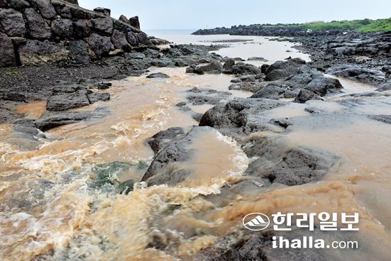 ▲집중 호우시 다량 유입된 빗물로 바다가 흙탕물로 변했다. /사진=한라일보 DB
