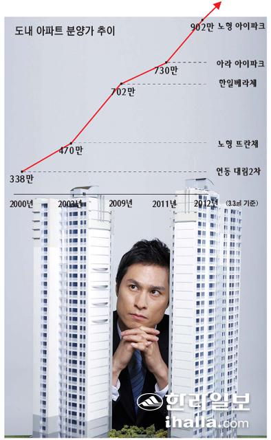3.3㎡당 아파트 분양가가 900만원을 넘어 1000만원대를 바라보면서 고분양가 논란과 함께 아파트 가격에 낀 '거품'을 우려하는 목소리도 커지고 있다. 3.3㎡당 1000만원을 바라보는 아파트값은 비단 신규 분양 아파트만이 아니라 기존에 들어선 아파트 거래가격도 다르지 않다는 데 있다.