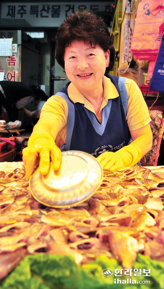 ▲'동문수산시장 터줏대감' 장순하씨는 20대 초반, 새댁시절 무작정 동문수산시장에 자리를 잡은 후 줄곧 30년간 이 곳을 지키고 있다. /사진=강경민기자