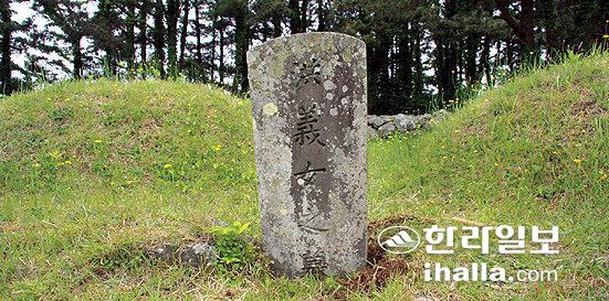 ▲조정철을 살리려다 모진 고문을 당하고 자신은 죽음을 선택한 홍윤애의 묘지. 조정철은 훗날 제주목사로 부임해 홍윤애의 묘를 단장했으며, 지금도 그가 짓고 쓴 묘비가 전해져 유배문학 연구자들의 발길이 이어지고 있다.