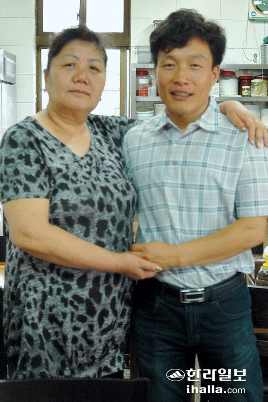 ▲우명호(오른쪽)씨와 그의 든든한 후원자인 김경숙씨가 오누이처럼 다정한 모습을 취하고 있다. /사진=김지은기자