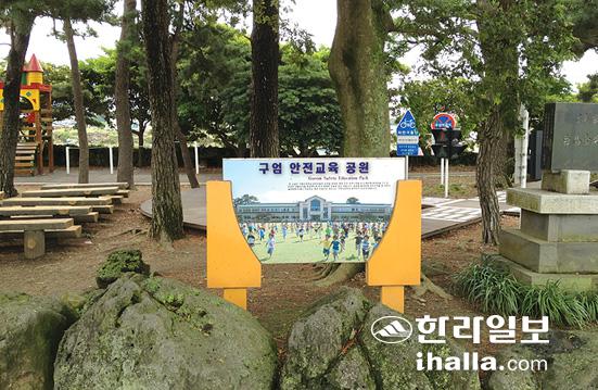 ▲학교운동장 한켠에 마련된 '구엄 안전교육 공원', 구엄초는 어린이들이 교통표지판 등 각종 안전관련 시설물이 설치된 공원에서 뛰어놀면서 자연스럽게 안전의식을 터득할 수 있도록 노력하고 있다./사진=최태경기자
