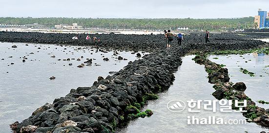 ▲제주시 서쪽으로 일주도로를 따라가면 만나는 한림읍 금능리와 협재리에는 전통 고기잡이 방식인 원담의 원형이 비교적 잘 보존돼 있다. 또 이를 활용한 원담축제도 매년 열고 있다. /사진=강경민기자