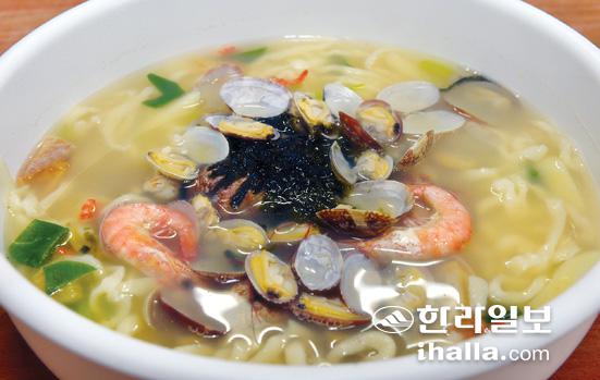 ▲활바지락과 멸치, 양파, 다시마, 무, 꽃게 등 신선한 재료로 국물맛을 낸 바지락칼국수. /사진=강경민기자