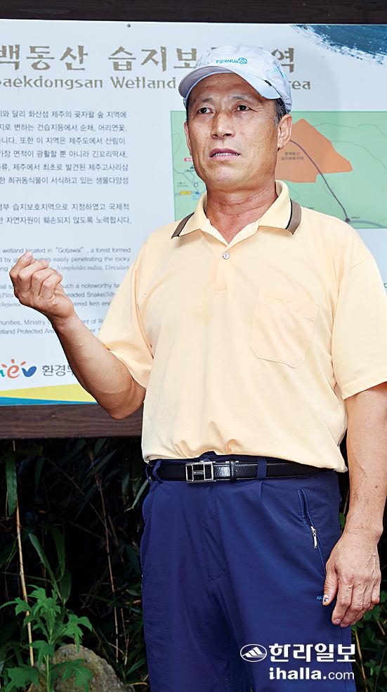 ▲마을주민들이 동백동산을 생태계의 보물창고로 인식하고 있다고 말하는 선흘1리 박현수 이장. /사진=강희만기자