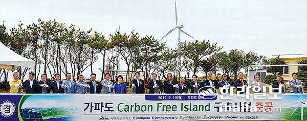 ▲'가파도 탄소없는 섬 구축사업' 준공식이 10일 서귀포시 대정읍 가파도 가파초등학교에서 우근민 제주지사와 박희수 제주도의회 의장 등이 참석한 가운데 열렸다. /사진=강경민기자 photo6n6@ihalla.com