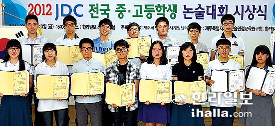 ▲2012 JDC 전국 중·고등학생 논술대회 영광의 수상자들. /사진=한라일보 DB