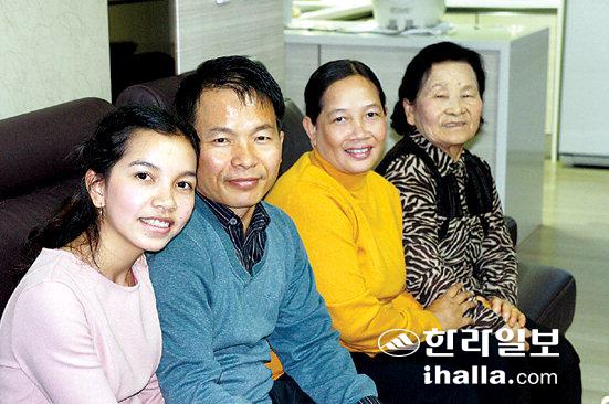 ▲왼쪽부터 인 찬다라·김동철씨 부부, 그리고 인찬다라씨의 친정어머니 쯤완나(46)씨와 시어머니 최말례(81)씨. /사진=김명선기자