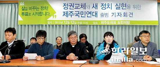 ▲12일 정권교체와 새정치 실현을 위한 제주 국민연대가 공식 출범했다. 강경민기자