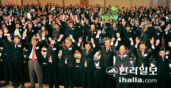 ▲계사년 제주경제는 세계적인 저성장 기조로 인해 성장률이 3% 안팎에 머무는 등 또 한번의 격랑기를 맞을 것으로 보인다. 제주자치도의 재정과 산업구조 개편 등이 제주경제의 시험대가 될 전망이다.사진은 2012년 제주경제단체 신년 인사회.  사진=한라일보 DB