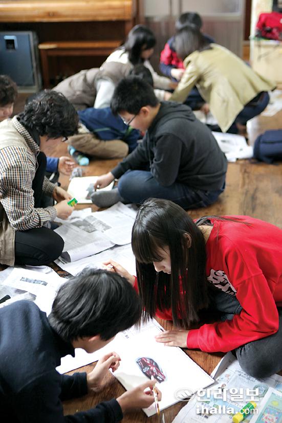 ▲제주시 이호2동 꿈틀논술교습소 아이들이 유진재활센터 아이들과 1:1 대면 형식으로 NIE 수업을 진행했다. 오은지기자