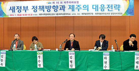 ▲사진은 지난 18일 제주상의에서 열린 '새정부 정책방향과 제주의 대응전략' 토론회.