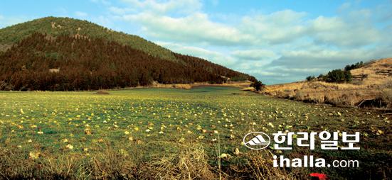 ▲노루로 인해 농작물 피해를 입은 제주시 한림읍 중산간 지역 오름 자락 아래 양배추밭. 고대로기자