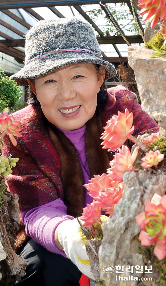 ▲야생화 사랑에 빠져 제주에 둥지를 튼 방한숙 원장이 방림원에서 손수 야생화를 가꾸고 있다. 강경민기자