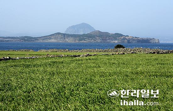 ▲서귀포시 대정읍 모슬포항에서 5.5km 떨어진 섬속 의 섬 가파도. 가파도는 87만 4328㎡ 크기로 상동과 하동 2개의 자연마을로 이뤄져 118가구가 살고 있다. 가파도 청보리밭을 넘어 보이는 제주바다와 송악산·산방산의 조합은 오묘하기만 하다. 이현숙 기자