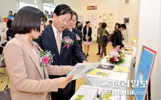 ▲양성언 교육감이 NIE 전시회를 둘러보고 있다.