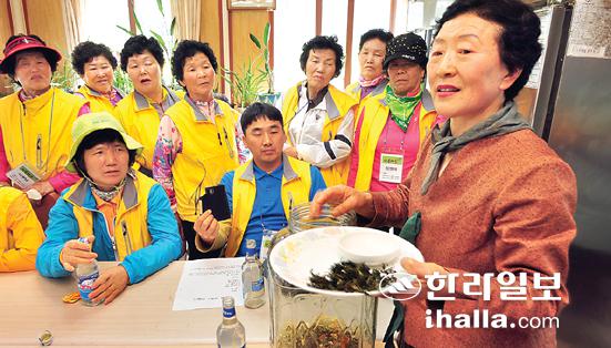▲제주지역에 스타 팜으로 지정된 26개소가 다양한 체험프로그램 운영 등을 통해 1차산업과 2·3차산업이 어우러지는 대안 경영체로 급부상하고 있다. 사진은 지난 17일 안덕면 양춘석식품의 감귤에센스 만들기 체험. 강희만기자