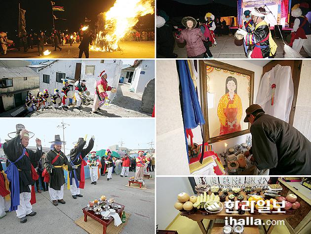 ▲추자도에 정월대보름이 찾아오면 마을마다 한바탕 축제가 벌어지는데 집집마다 조상들을 위한 제사상을 차려 제를 지내기도 한다. 신양리에서는 달집태우기, 쥐불놀이 등을 즐기고 대서리는 헌석굿과 함께 줄다리기도 함께 한다. 김명선기자
