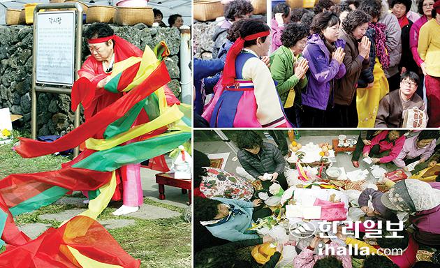 ▶"씨드림 잘하고…조상신 잘모셔야"=예전 어르신들은 영등할망이 음력 1월 15일 제주에 들어와서 2월 15일에 우도로 나간다고 그랬다. 이 기간 물 한사발이라도 올려놓고 정성을 들여야 한다. 영등할망이 지나간 곳은 전복 등 해산물을 하나도 구경할 수 없는데, 이는 영등신이 해산물을 모두 먹어 버렸기 때문이란다. 이때 영등신에게 정성을 들이면, 신은 미안한 마음에 바다와 땅에 씨를 뿌리고 간단다.