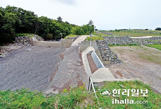 ▲2007년 불어닥친 태풍 '나리'를 계기로 도내 하천 중·상류에 만든 저류지의 저류용량에 대한 진단이 필요하다는 지적이다. 사진은 한천 제2저류지. 강경민기자