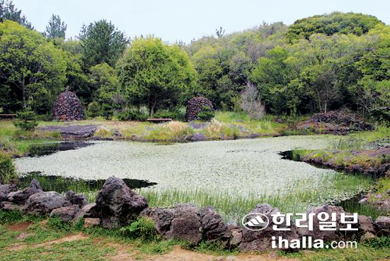 ▲람사르 시범마을 1호로 지정된 선흘1리 동백동산에 있는 먼물깍 습지