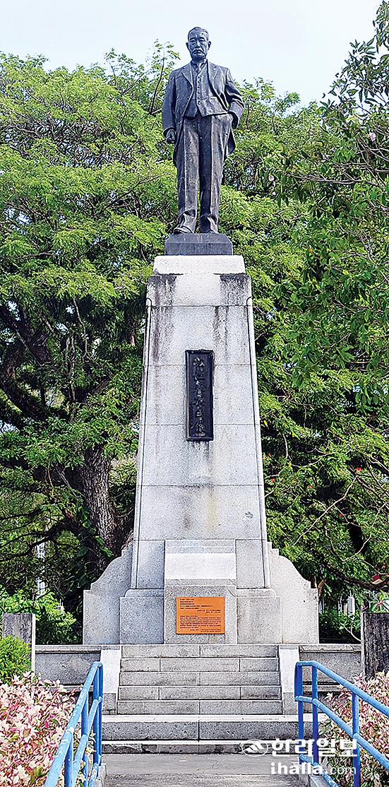 ▲사이판 중심지에 세워진 설탕왕 마츠에 하루지 동상.