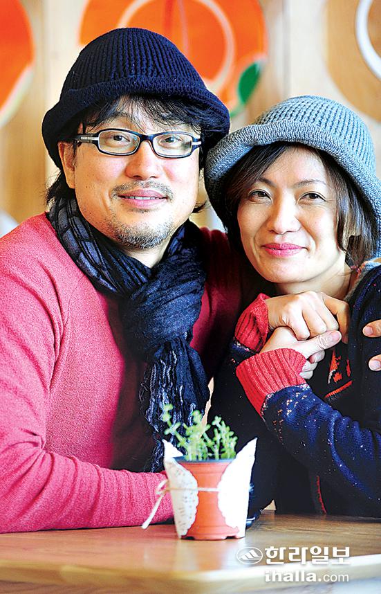 ▲제주에 여행을 왔다가 바다에 끌려 제주에 정착한 김종성씨와 아내 윤미애씨가 다정하게 포즈를 취했다. 강희만기자