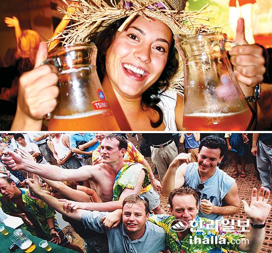 ▲칭다오 맥주축제를 만끽하고 있는 참가자들.