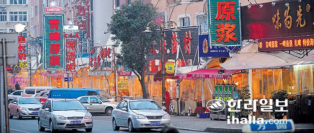 ▲칭다오의 명물로 자리잡은 길게 늘어선 칭다오의 맥주 거리. 강희만기자