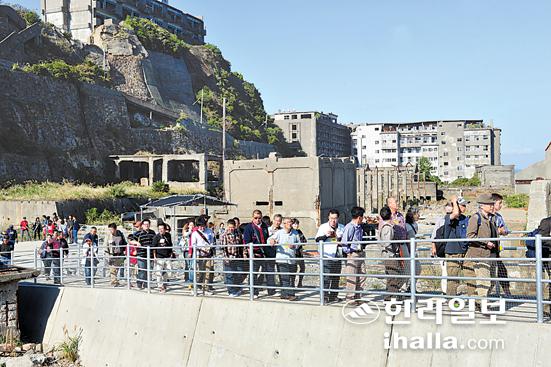 바다 위 거대한 콘크리트 괴물 같은 '군함도'수천명 강제동원 사실 모르는 관광객들 북적