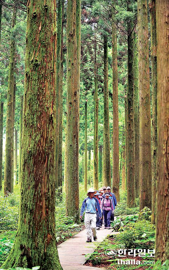▲일제가 1930년대 한라산에 심은 삼나무 조림지. 수령이 80년이 넘은 것으로 남원읍 한남리 소재 국립산림과학원 난대아열대산림연구소 관할 시험림에 일부가 남아 있다. 강경민기자 photo6n6@ihalla.com