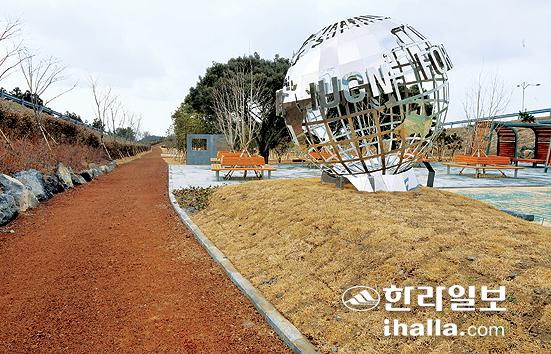 ▲지난해 2012 제주 세계자연보전총회를 기념해 서귀포시 안덕면 평화로 동광 분기점 주변에 조성된 'IUCN 기념숲'. '생명·나눔·약속의 숲' 등 세가지로 구성된 기념숲은 기념 조형물과 방사탑 전망대 등이 길과 어우러져 있어 산책하기에 제격이나 이정표 등의 설명이 부족해 찾기 어려운 점이 아쉽다. 강희만기자 photo@ihalla.com