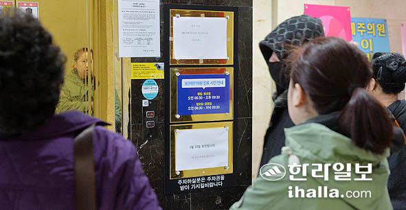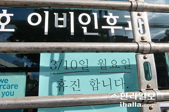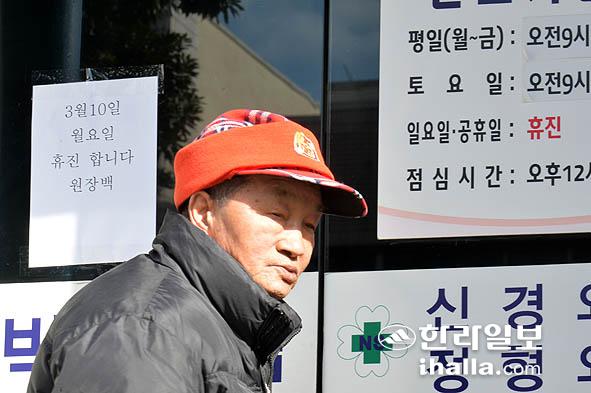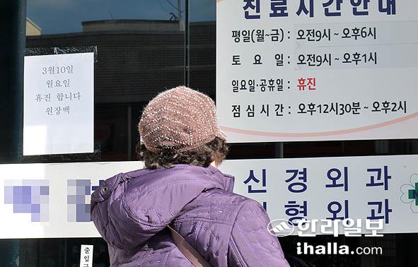 10일 의사협회가 파업에 들어가면서 제주시내 한 병원에 휴진을 알리는 안내문이 붙여져 환자들이 발길을 돌리고 있다. 강경민기자 photo6n6@ihalla.com