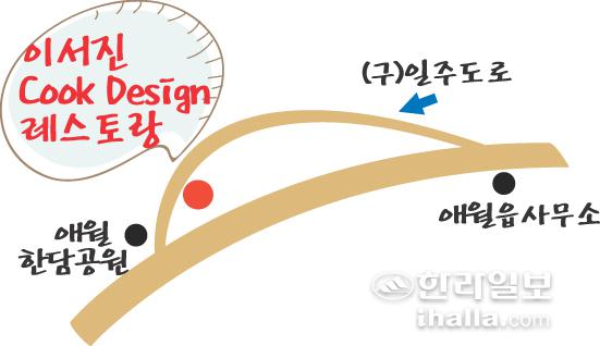 '이서진 cook design'. 이서진? 탤런트 이서진인가? 순간 멈칫했다. 여주인 이름이 이서진이란다. 지난해 초 남편과 함께 제주에 정착한 40대 여성으로, 인천에 살다 제주여행 중 풍광에 푹 빠진 뒤 이전의 모든 것을 과감하게 청산해 제주행을 선택했다. 음식 장사 경험은 전혀 없었지만 음식 만들기를 좋아하고 또 새로운 메뉴를 개발해 지인들에게 맛을 보이는게 좋았던 터라 제주정착의 밑거름으로 이른바 '음식 장사'를 선택했단다.