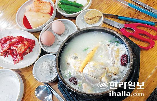 재료에 대한 자신감과 음식 맛 하나로 승부를 띄워 승승장구하고 있는 당찬 맛집이 있다. 서귀포시 토평동에 있는 약촌삼계탕. 말 그대로 삼계탕이 주 메뉴다.
