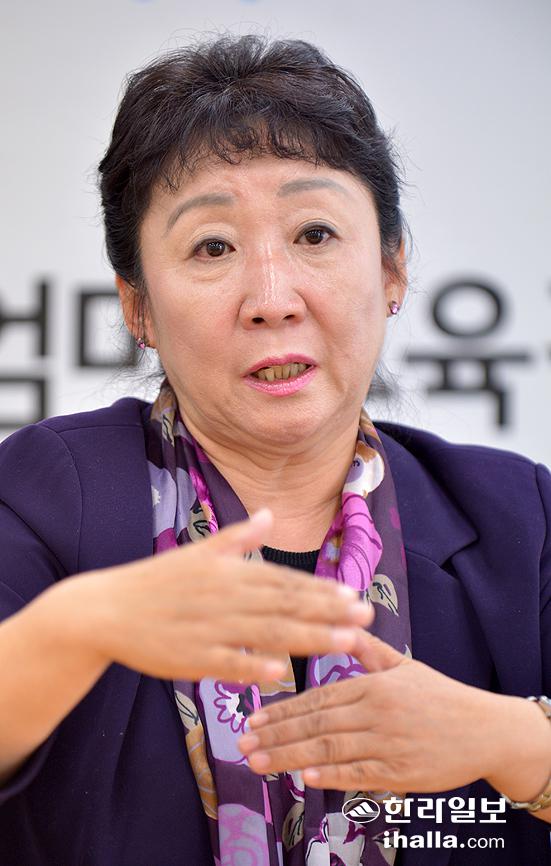 ▶왜 본인이 제주자치도교육감이 돼야 하나=제가 다른 교육감 예비후보들과 다른 점들이 있는데, 그것을 통해서 행복한 교육으로 이끌 수 있겠다는 생각이 들었다. 그것은 여성이자 엄마라는 점, 고등교육 출신 인문학 분야 대학교수라는 점, 국립대 최초 여성 교무처장을 하면서 가장 중요한 대학행정을 경험했다는 점, 독일의 공교육의 사례를 직접 체험한 점을 들 수 있다. 무엇보다도 여성이 교육을 담당하면 엄마의 강인함과 철저함, 희생과 봉사정신으로 교육의 문제를 다루면 가장 이상적이라고 생각한다. 인간의 이해를 다루는 인문학 분야의 교수라는 점은 교육의 수장인 교육감으로는 가장 적합하다고 볼 수 있다. 또 2005년부터 2년간 대학행정을 할 때 제주대 부속 중·고교의 교장공모제를 비롯해서 중등교육 과정의 행정 경험도 가지고 있다.
