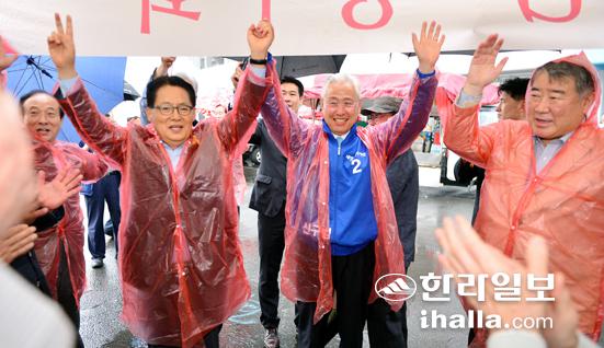 이와 함께 김두관 전 경남도지사와 함께 동문시장을 찾아 민생투어를 한 후 새정치민주연합 도의원 후보인 고순생(삼도·오라)·박호형(일도2동 갑)·김형군(일도1·이도1·건입) 후보의 출정식에 참석해 지원유세를 펼쳤다.