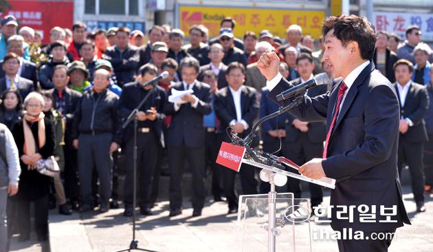 신 후보는 이어 "원희룡 후보는 지난 3월 16일 예비후보 등록조차 안 된 상태에서 제주시 관덕정 앞 광장에서 출정식을 방불케 할 정도로 많은 인원이 모인 자리에서 출마 기자회견을 열어 마이크와 앰프를 사용해 "제주도민 여러분, 도와주십시오" 등의 발언으로 지지를 호소하는 등 사실상 선거유세를 해 사전선거운동을 했다는 혐의를 받고 있다"고 주장했다.